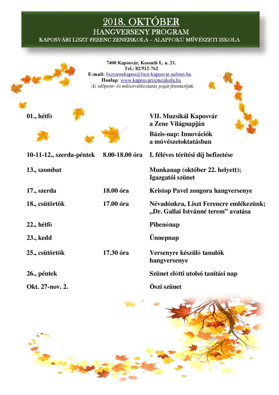 2018. október havi programok