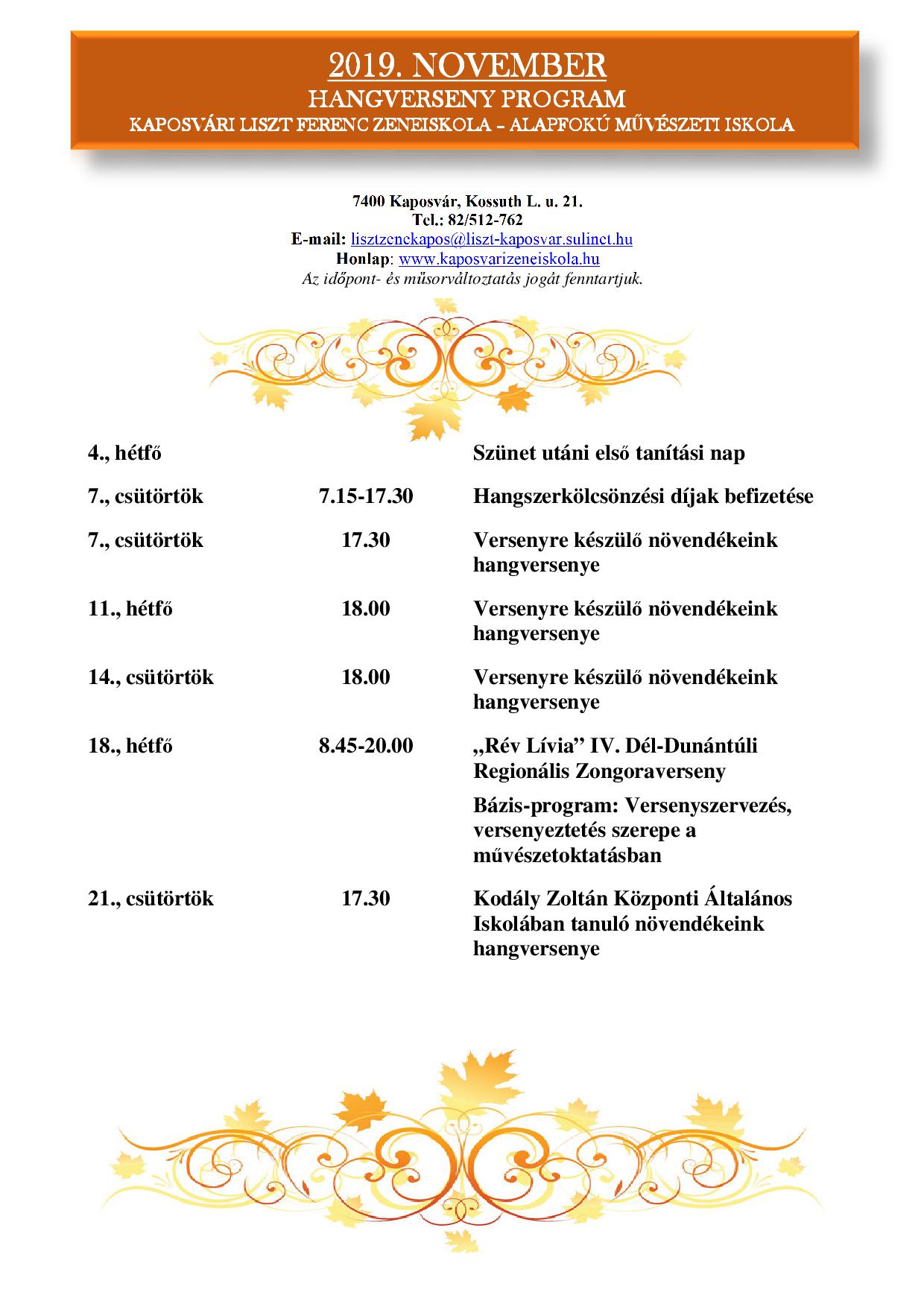 2019. november havi program