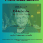 | 7 | Lisztesek: Éder Zsófia, Török Alíz, Sipos Levente | Sosztakovics: G-dúr Keringő | fuvola, klarinét, zongora | Kaposvári Munkácsy Mihály Gimnázium | 1 állvány, zongora | 3.5 |
